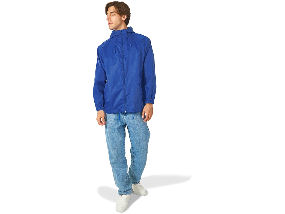 Мужская ветровка с капюшоном без подкладки застегивается на молнию, манжеты на резинке, нижняя часть регулируется с помощью шнурка. Ветровка Promo очень легкая, убирается в удобный чехол и почти не занимает места – она идеальна в качестве сувенира на мероприятиях, проходящих на улице в теплое время года. Доступно четыре расцветки.