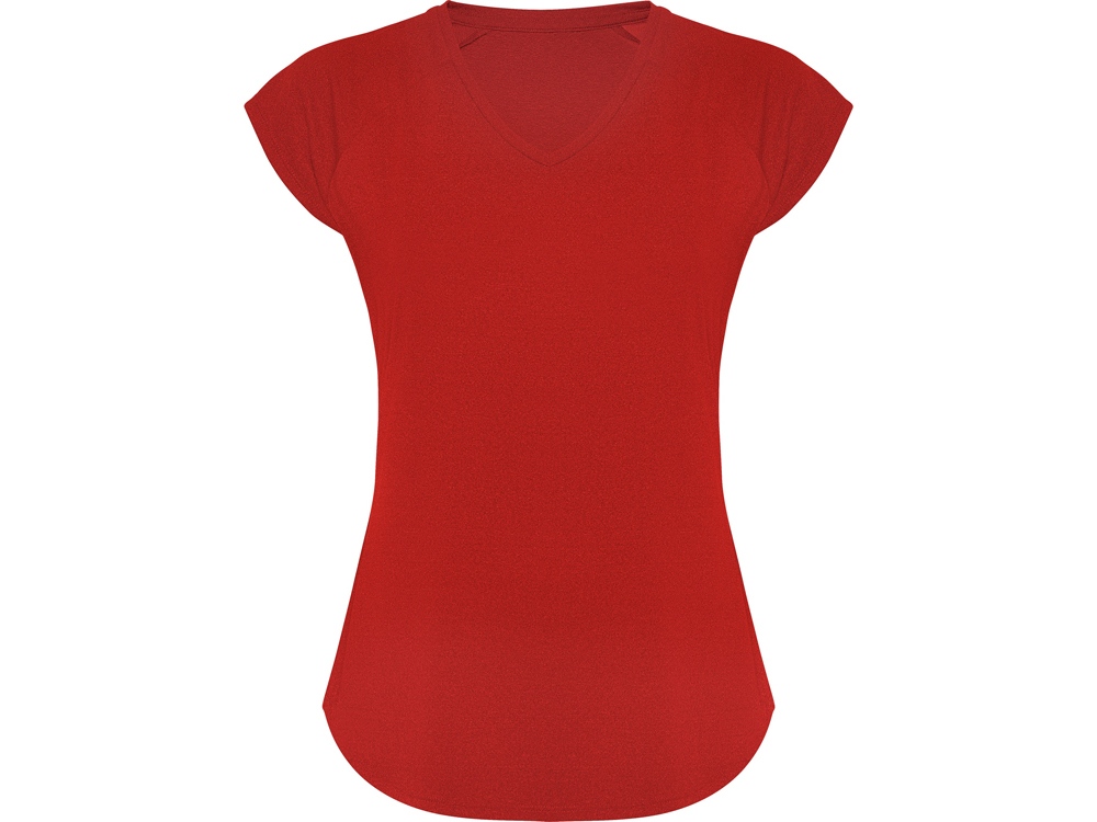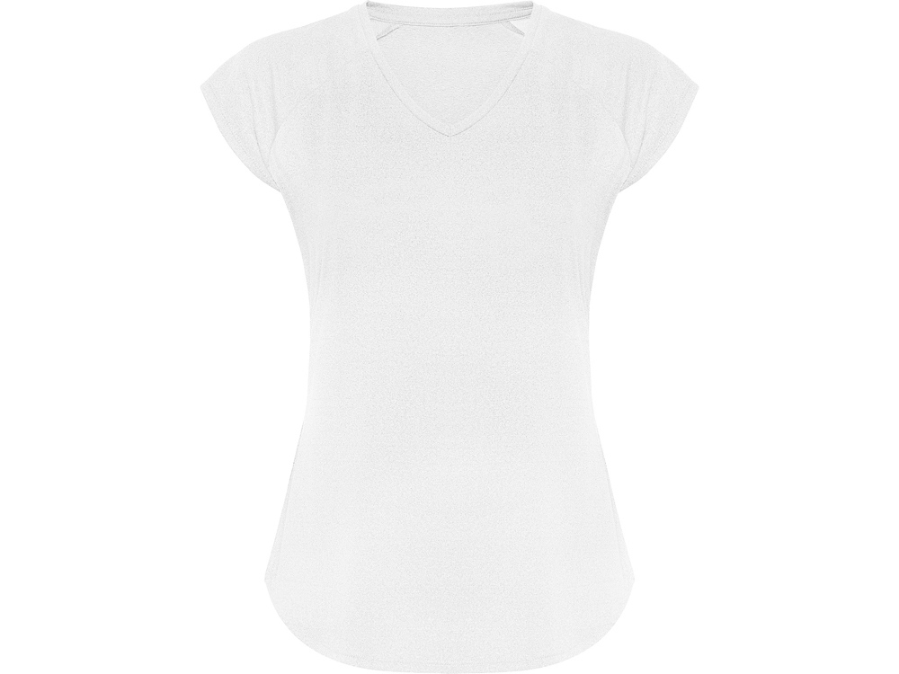Спортивная женская футболка с коротким рукавом реглан. Вырез горловины V. Полотно из полиэстера на ощупь напоминающее хлопок. Приталенный силуэт.