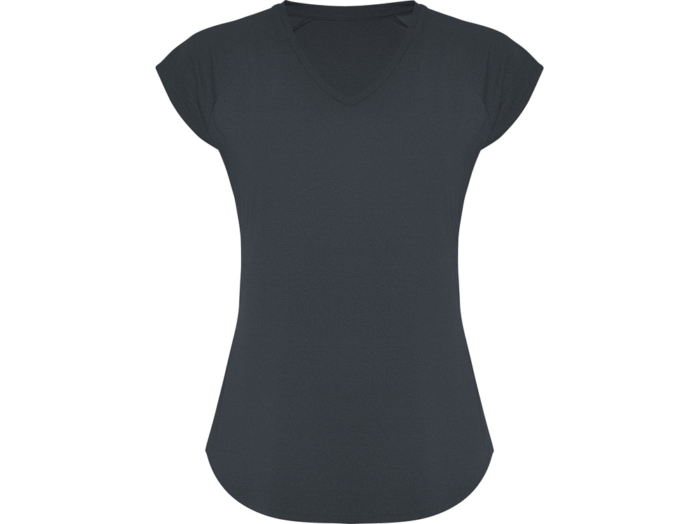 Спортивная женская футболка с коротким рукавом реглан. Вырез горловины V. Полотно из полиэстера на ощупь напоминающее хлопок. Приталенный силуэт.