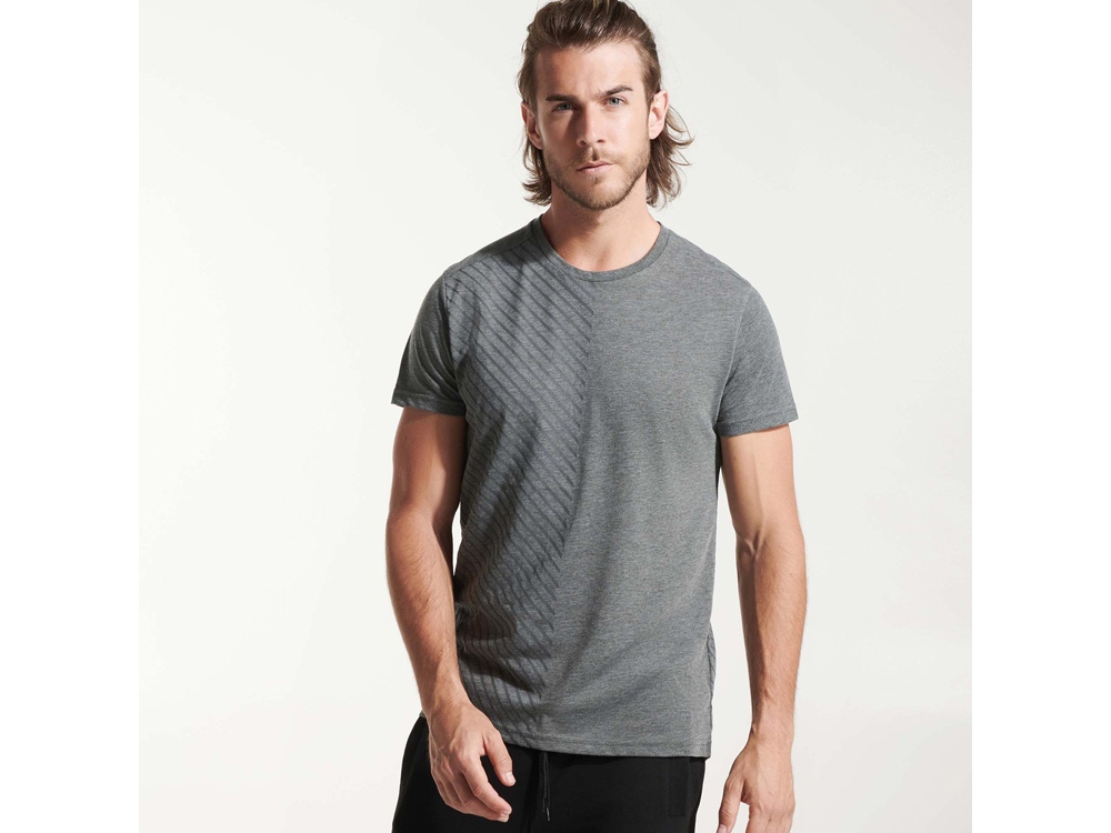 Футболка с коротким рукавом и круглым вырезом горловины. Принт с боку на полочке и спинке. Кокетки на плечах.