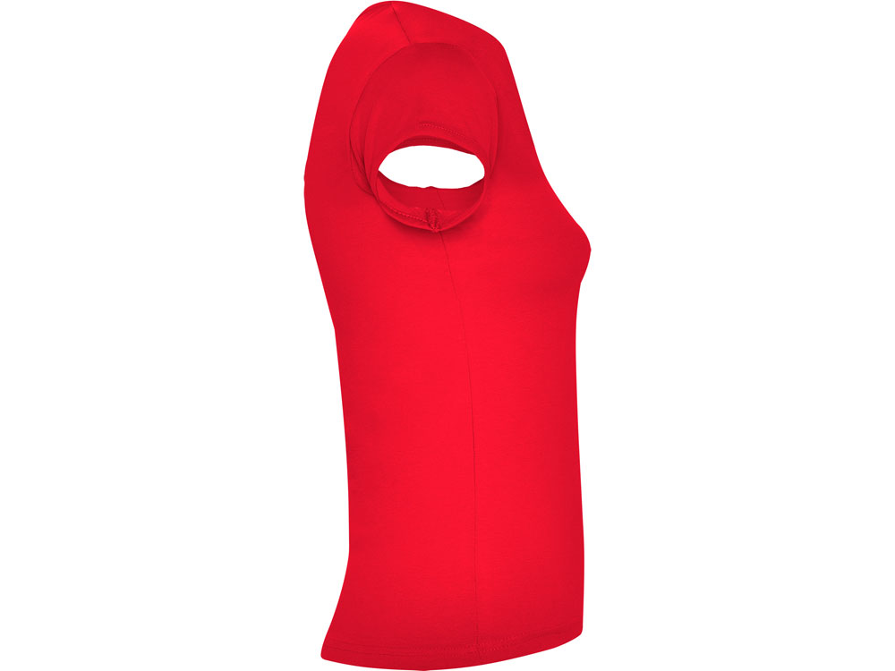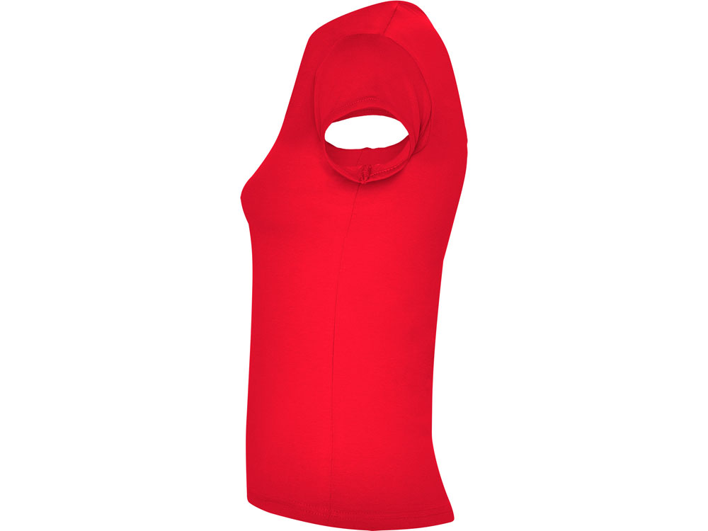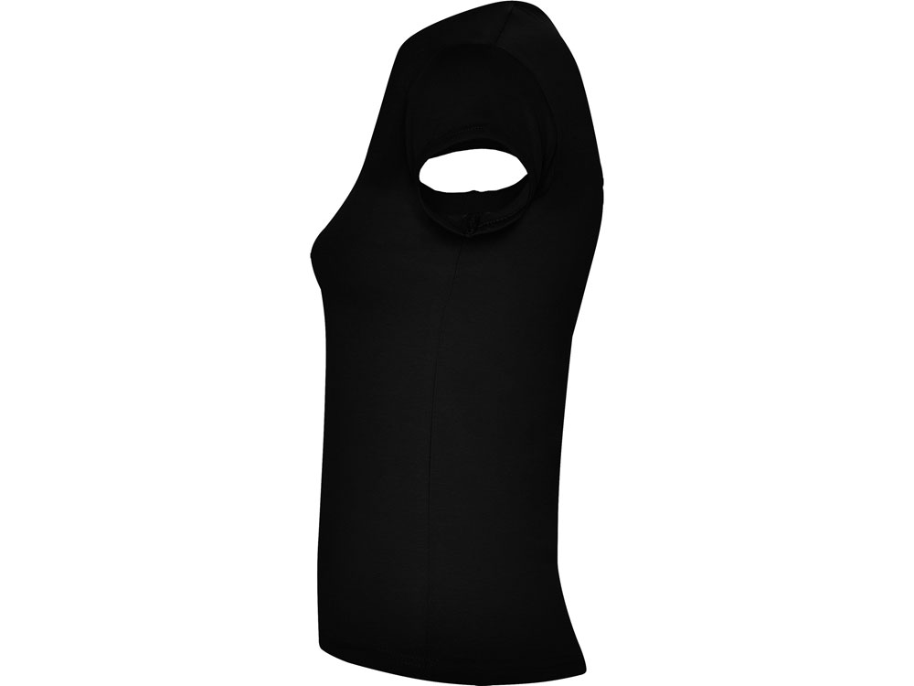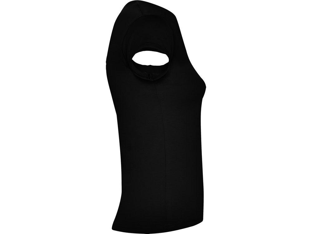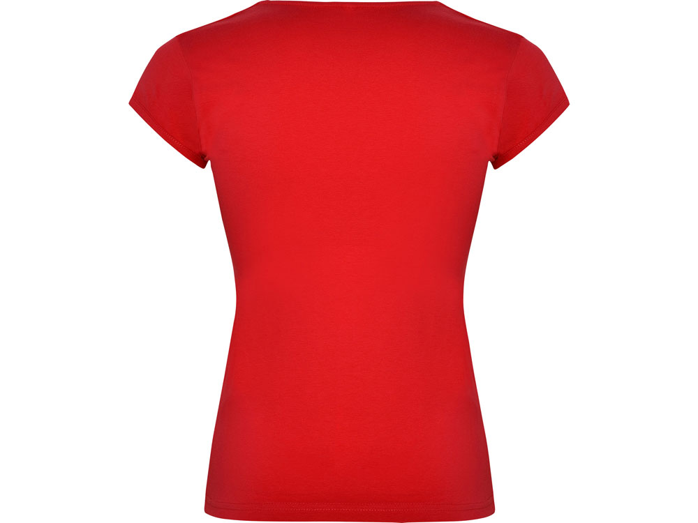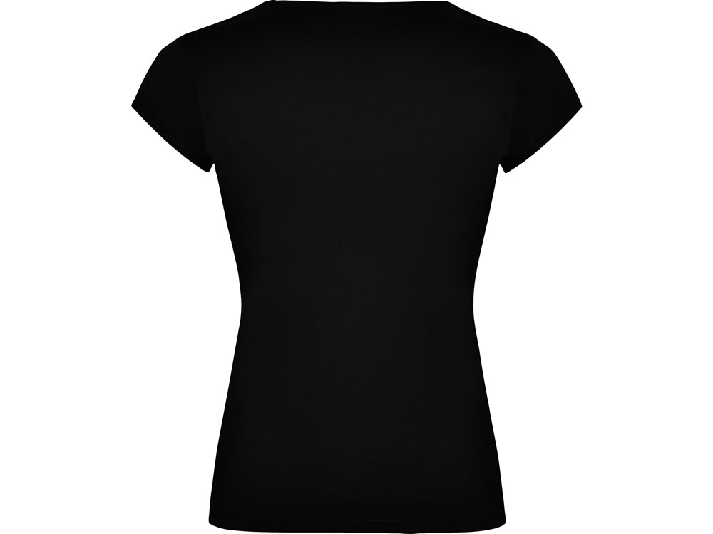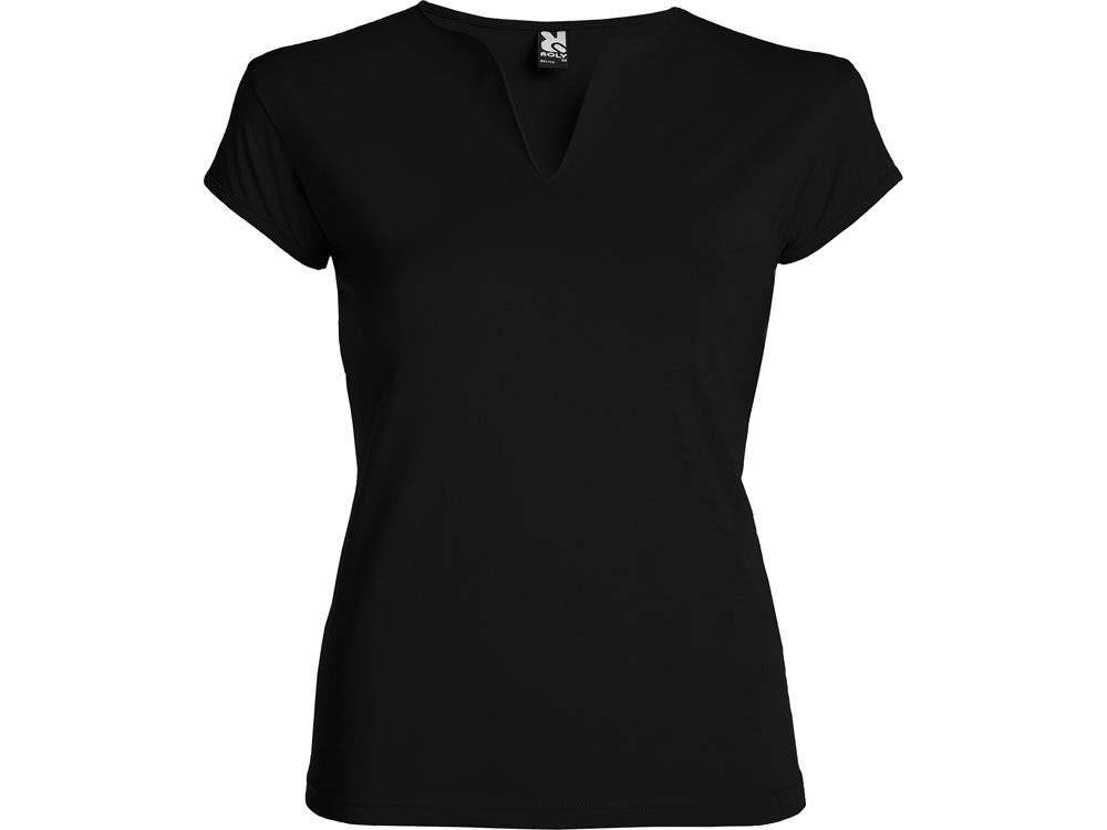 Приталенная женская футболка с круглым вырезом и v-образным разрезом спереди. Двойная отстрочка по рукавам и низу изделия.