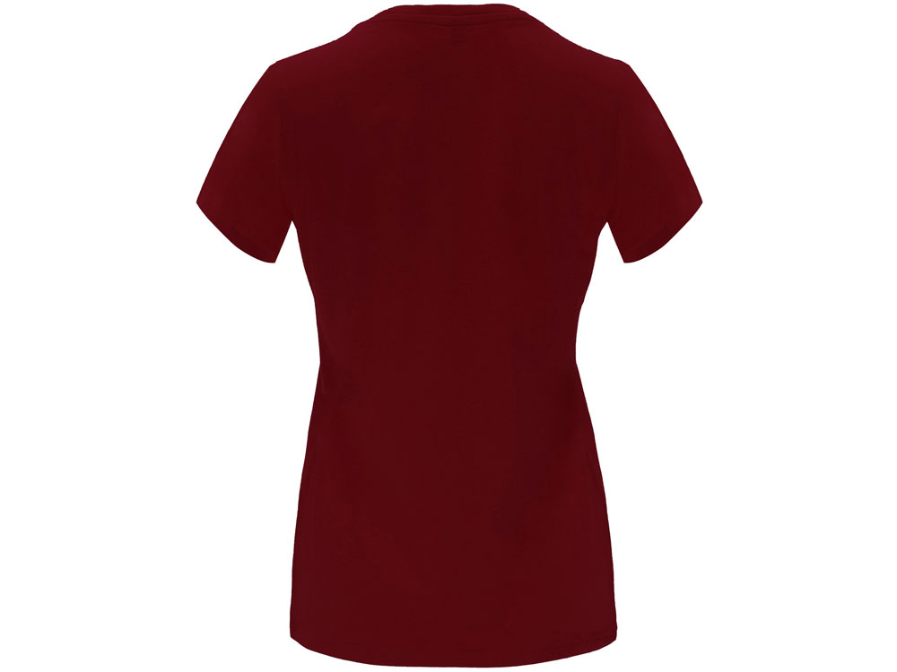 Женская приталенная футболка. Круглый вырез горловины обработан рибом 1х1. Шов горловины укреплен тесьмой.