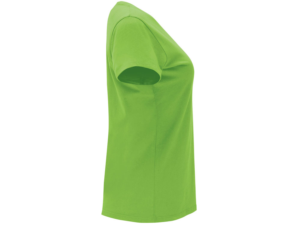 Женская приталенная футболка. Круглый вырез горловины обработан рибом 1х1. Шов горловины укреплен тесьмой.