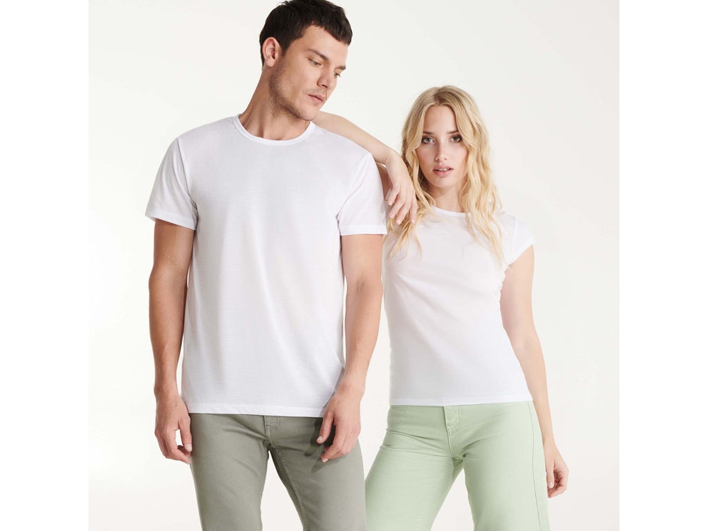 Футболка с коротким рукавом приталенного силуэта. Горловина обработана основным полотном. Полиэстеровое полотно тактильно напоминает хлопок. Модель разработана специально для сублимации.