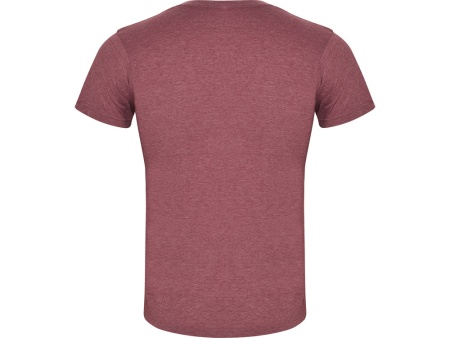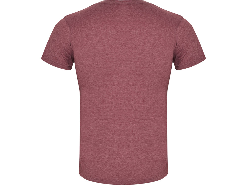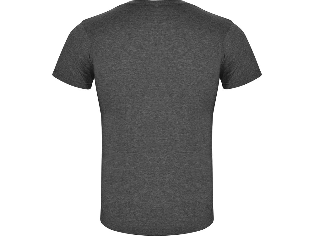 Футболка без боковых швов с коротким рукавом в меланжевом эффекте. Риб горловины 1х1 дополнительно укреплен двойной строчкой.