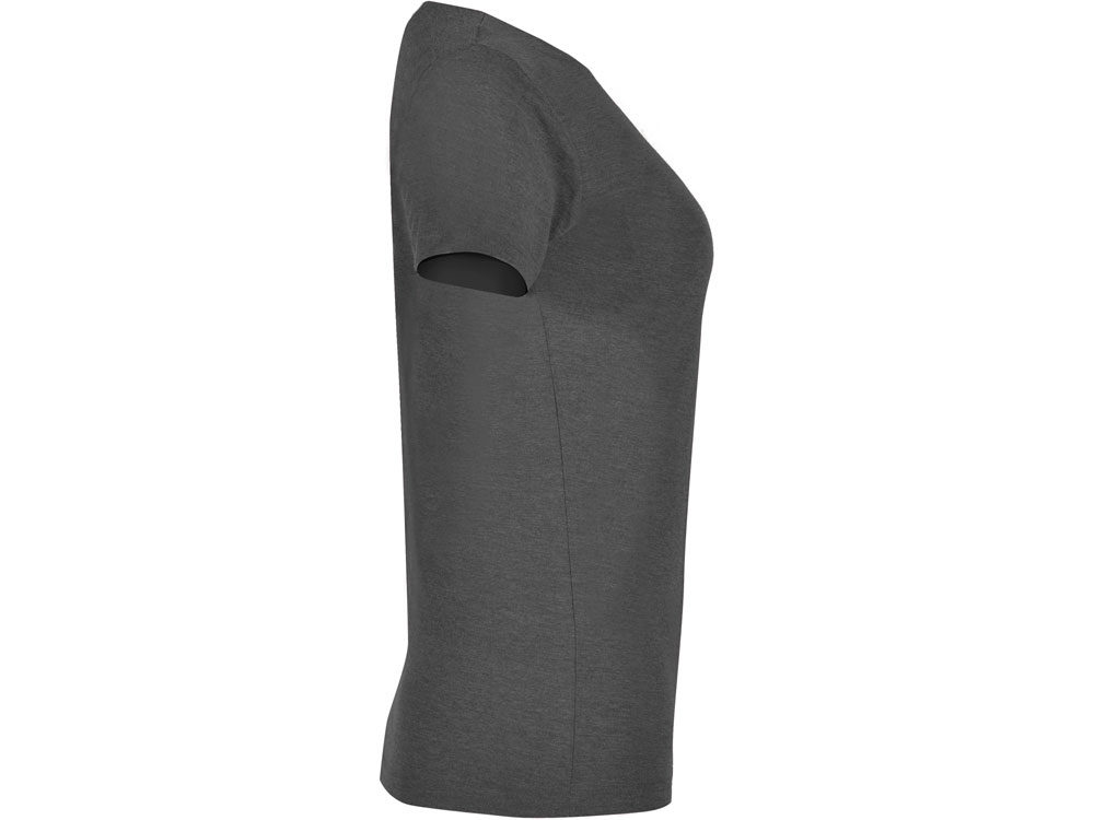 Футболка с коротким рукавом в меланжевом эффекте. Риб горловины 1х1 дополнительно укреплен двойной строчкой.