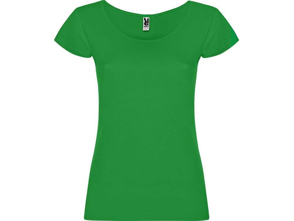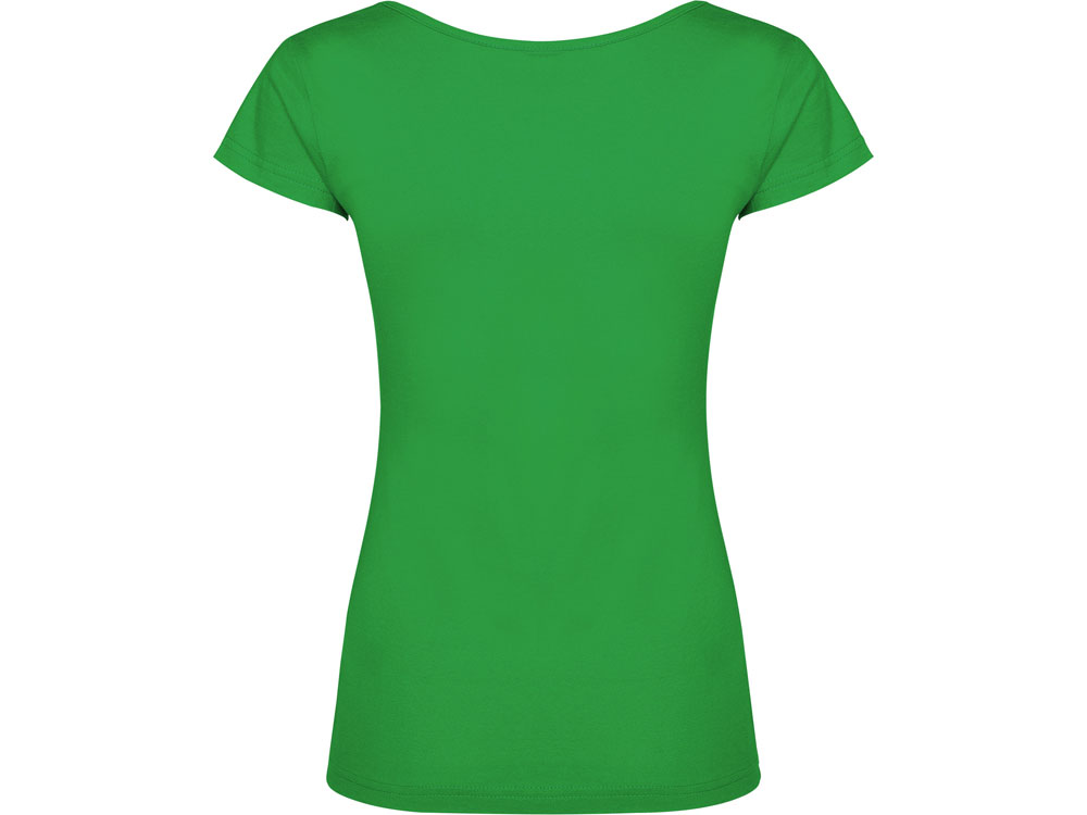 Прилегающая женская футболка с глубоким вырезом, обработанным рибом.