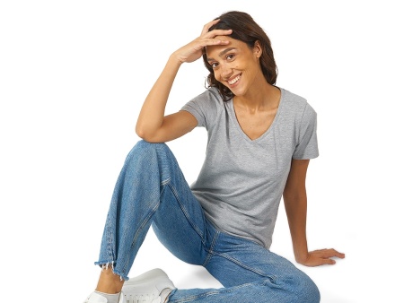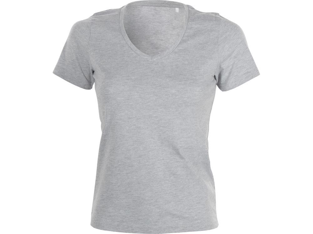 Женская футболка из натурального хлопка с элегантным V-образным вырезом. Материал отлично подходит для нанесения рекламной информации. Натуральная ткань не вызывает раздражения кожи.