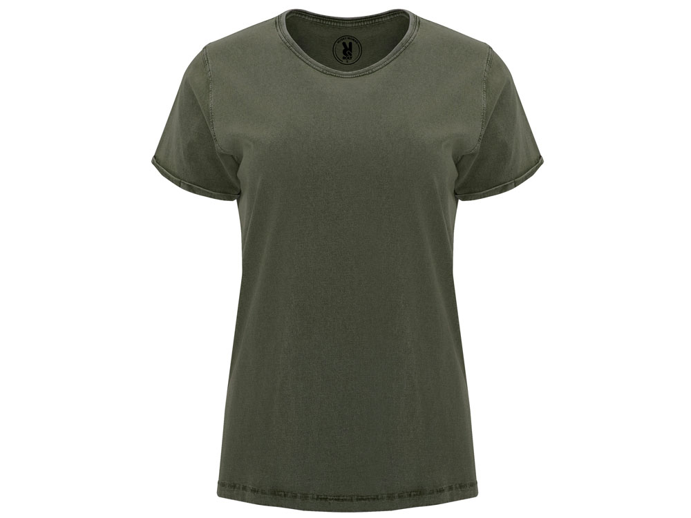 Женская футболка с джинсовым эффектом. Короткий рукав, горловина обработана рибом 1х1 и дополнительно укреплена тесьмой. Двойная отстрочка по пройме. Рукав с закручивающимся краем. В ассортименте также представлена аналогичная мужская модель Husky