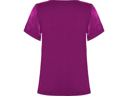 Женская футболка с коротким рукавом с расширенной горловиной. Накладной карман на груди слева. Спинка длиннее полочки. Разрезы в боковых швах.