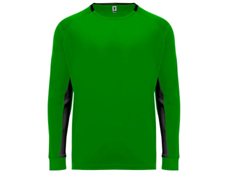 Футболка с длинным рукавом комфортной посадки с боковыми швами. Горловина обработана рибом 1х1 и тесьмой по спинке. Футболка выполнена из хлопкового джерси.