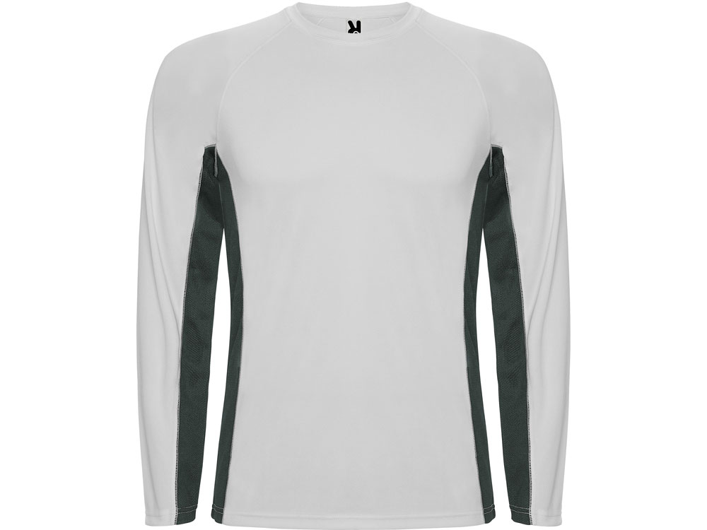 Футболка с длинным рукавом реглан из двух комбинируемых полотен. Основное полотно из структурного полотна, а боковые вставки и внутренняя сторона рукава из микроперфорированного полотна. Круглый вырез горловины дополнительно укреплен плоской строчкой. Комфортная и удобная модель