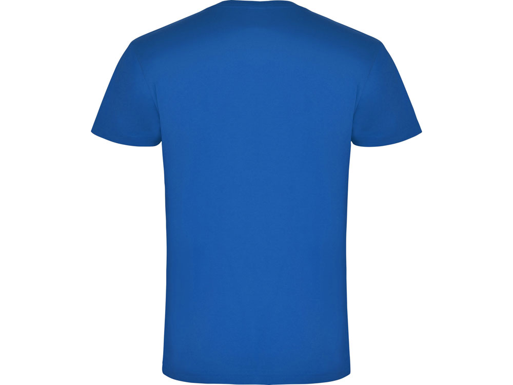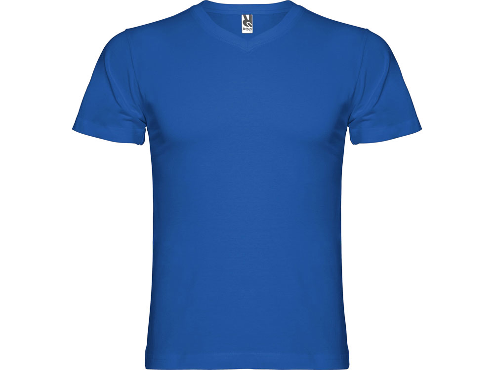 Мужская футболка без боковых швов с коротким рукавом и V-образным вырезом горловины, отделанном рибом 1х1. Горловина и плечевые швы дополнительно укреплены тесьмой.