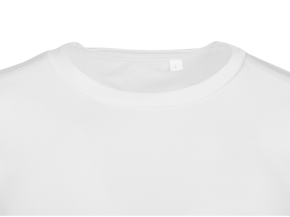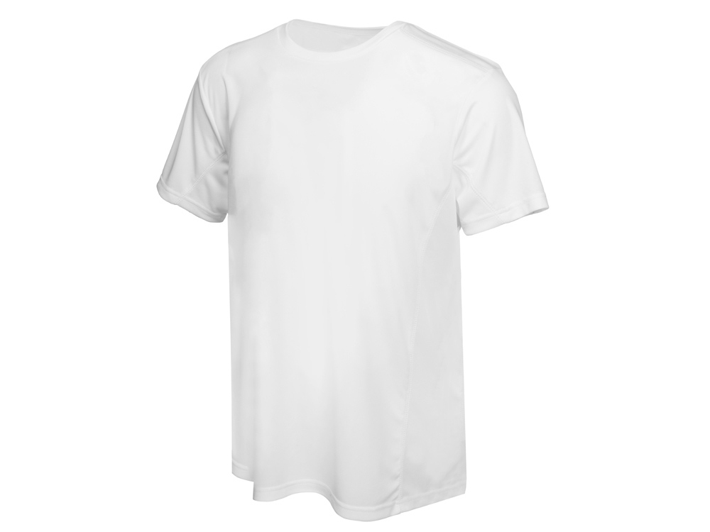 Мужская спортивная футболка выполнена из двух разных видов полотна: спинка и перед из интерлока имеют гладкую поверхность, а декоративные вставки выполнены из спортивной сетки ячеистой структуры. Благодаря наличию таких вставок воздух свободно проникает под футболку, охлаждая кожу во время спортивных нагрузок.