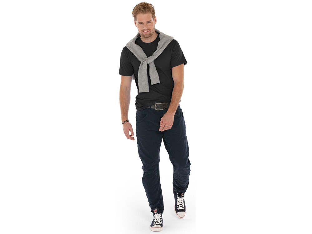 Мужская футболка сшита из натурального хлопка без боковых швов. Отлично подходит для нанесения рекламной информации. Возможна вышивка или трафаретная печать. Натуральный материал не вызывает раздражения кожи.