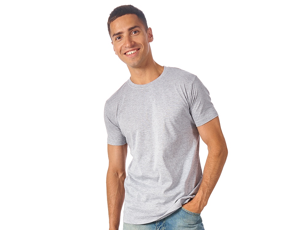Мужская футболка сшита из натурального хлопка без боковых швов. Отлично подходит для нанесения рекламной информации. Возможна вышивка или трафаретная печать. Натуральный материал не вызывает раздражения кожи.