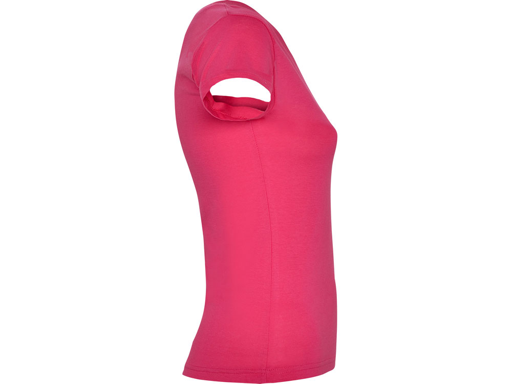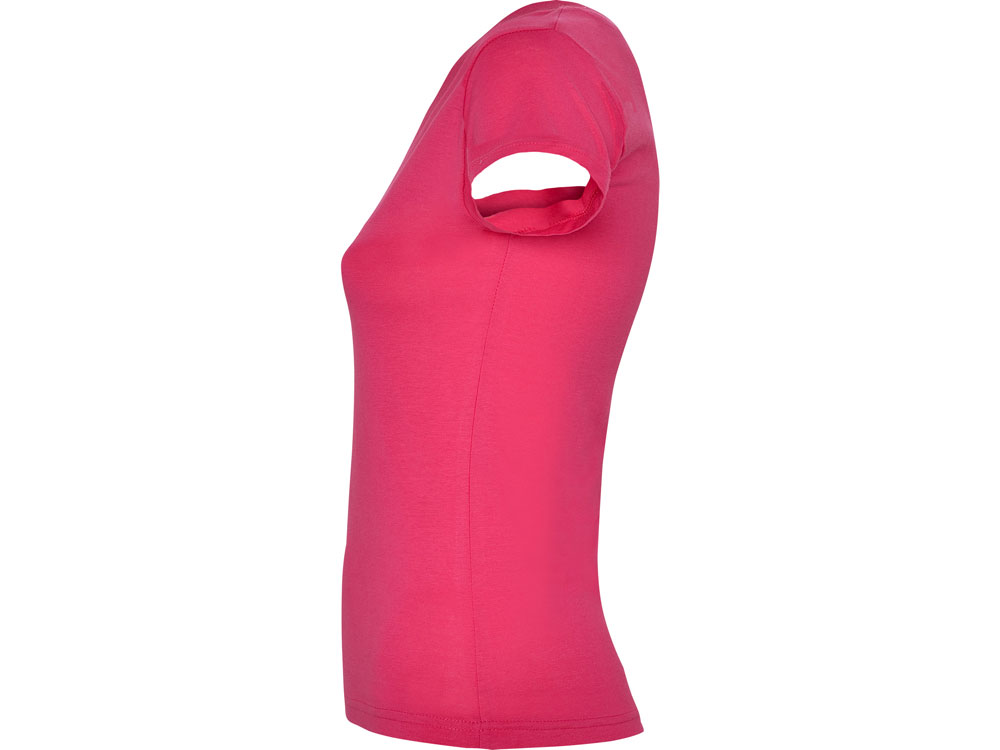 Женская футболка с коротким рукавом и V-образной горловине, обработано рибом 1х1. Полуприлегающий силуэт модели с боковыми швами.