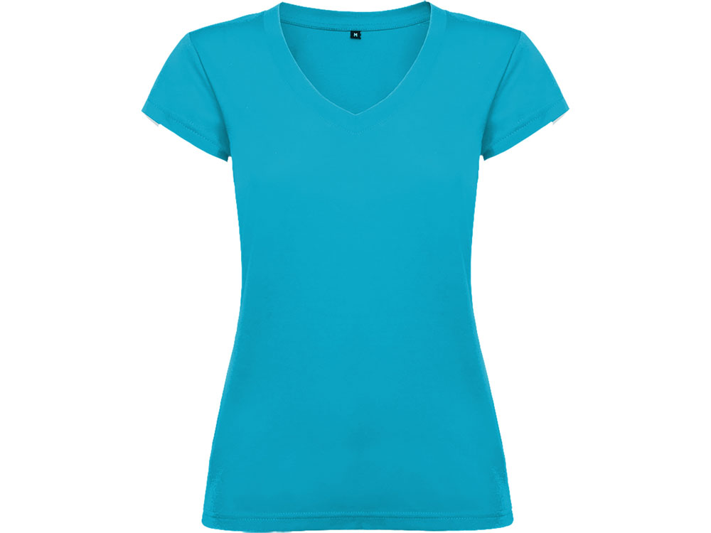 Женская футболка с коротким рукавом и V-образной горловине, обработано рибом 1х1. Полуприлегающий силуэт модели с боковыми швами.