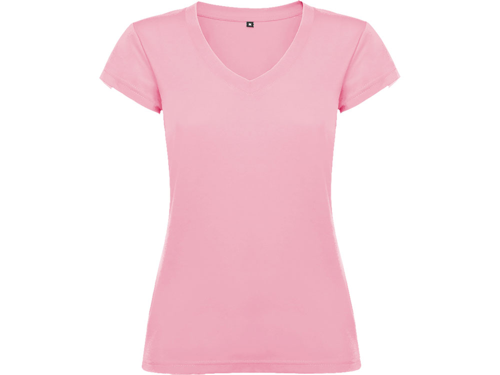 Женская футболка с коротким рукавом и V-образной горловине, обработано рибом 1х1. Полуприлегающий силуэт модели с боковыми швами.