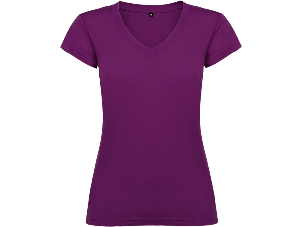 Женская футболка с коротким рукавом и V-образной горловине, обработано рибом 1х1. Полуприлегающий силуэт модели с боковыми швами.