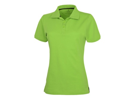Женская рубашка поло с короткими рукавами Calgary. Стандартный покрой. Опущенный плечевой шов, цепная строчка. Мужская и детская модели на двух пуговицах. Женская модель с планкой на три пуговицы. Боковые разрезы с атласной лентой внутри. Детали со швами Pick-Stitch. Принт лого сзади в тон изделия. Атласная лента внутри горловины. Полумесяц. Резинка 1х1 на воротнике и манжетах. Трикотажное пике, 100% хлопок. 200 г/м².