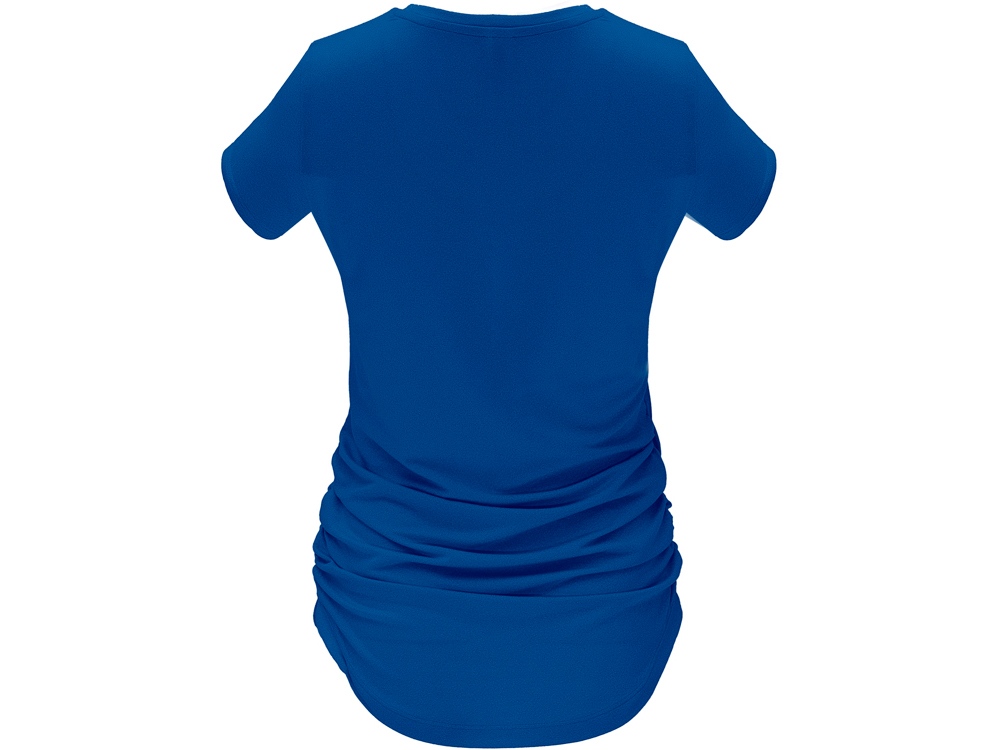 Спортивная футболка с коротким рукавом для женщин. Полотно из полиэстера на ощупь напоминающее хлопок. Круглый вырез горловины обработан бейкой из того же полотна. Эластичная драпировка по боковым швам для лучшей посадки по фигуре. Узкий силуэт.