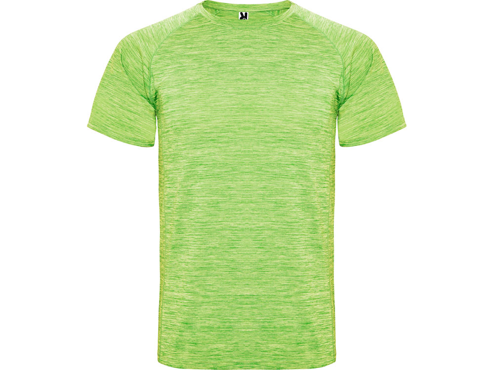 Спортивная футболка из полиэстерового полотна с рукавом реглан. Круглый вырез горловины. Легко сохнущее дышащее полотно с красивым меланжевым эффектом.