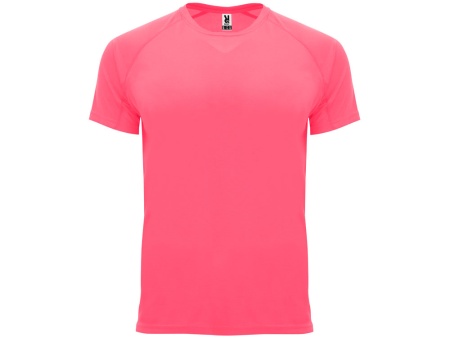 Спортивная футболка с коротким рукавом реглан. Круглый вырез горловины с отделкой плоским швом. Рукав сложного кроя для обеспечения дополнительного удобства при занятиях спортом. Отделка плоским швом с застилом по пройме и рукавам.