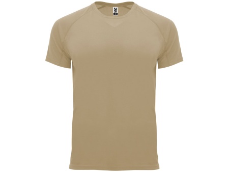 Спортивная футболка с коротким рукавом реглан. Круглый вырез горловины с отделкой плоским швом. Рукав сложного кроя для обеспечения дополнительного удобства при занятиях спортом. Отделка плоским швом с застилом по пройме и рукавам.