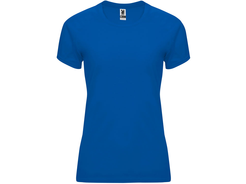 Спортивная футболка с коротким рукавом реглан для женщин. Круглый вырез горловины с отделкой плоским швом. Рукав сложного кроя для обеспечения дополнительного удобства при занятиях спортом. Отделка плоским швом с застилом по пройме и рукавам.