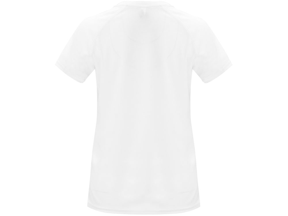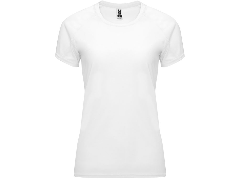 Спортивная футболка с коротким рукавом реглан для женщин. Круглый вырез горловины с отделкой плоским швом. Рукав сложного кроя для обеспечения дополнительного удобства при занятиях спортом. Отделка плоским швом с застилом по пройме и рукавам.