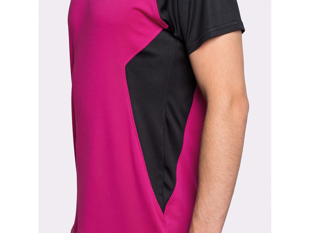 Спортивная футболка с коротким рукавом реглан. Круглый вырез горловины. Контрастные рукава и боковые вставки.