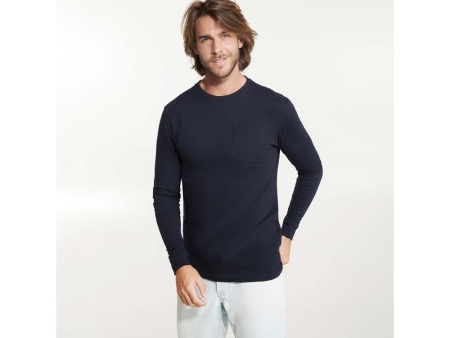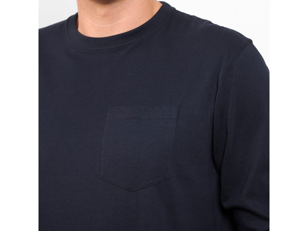 Футболка с длинным рукавом. Круглый вырез горловины и манжеты обработаны рибом 1х1. Карман на полочке слева. Отделочная строчка для усиления по горловине и плечевым швам.