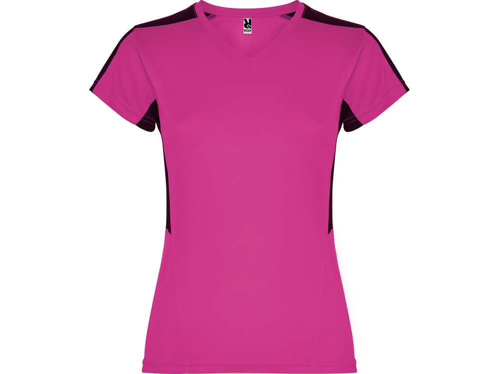 Женская футболка с коротким рукавом. V-образная горловина. Комбинация из 2 полотен контрастного цвета: структурное полотно на полочке и дышащая 3D сетка на плечах и боках.