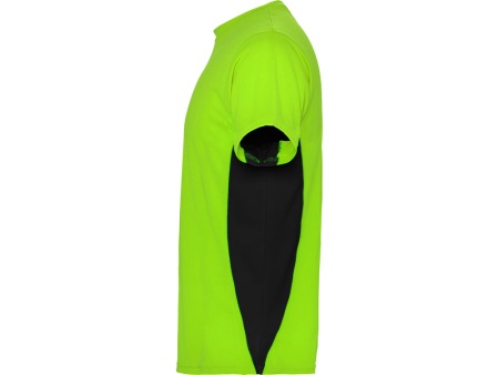 Спортивная футболка из технологического полотна и колорблок вставками. Круглый вырез горловины укреплен тесьмой. Контрастные вставки по бокам. Дышащее технологичное полотно - легко стирается и быстро сохнет.