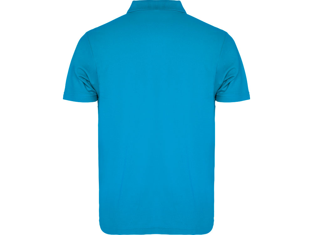 Поло с коротким рукавом, воротник из риба 1х1, планка застегивается на 3 пуговицы.