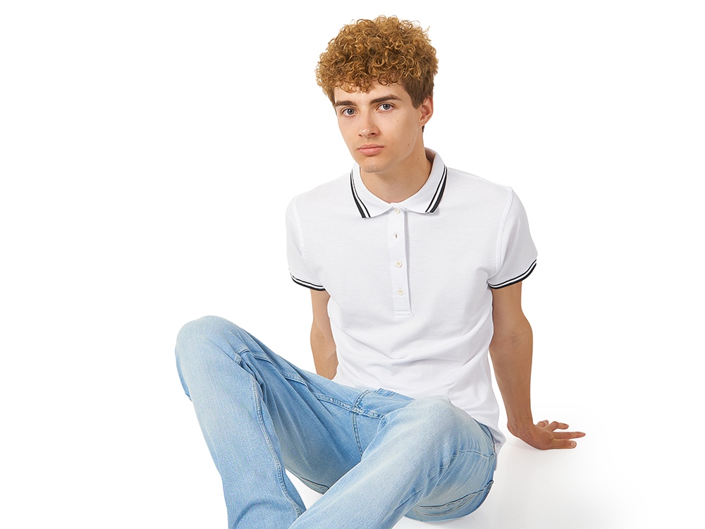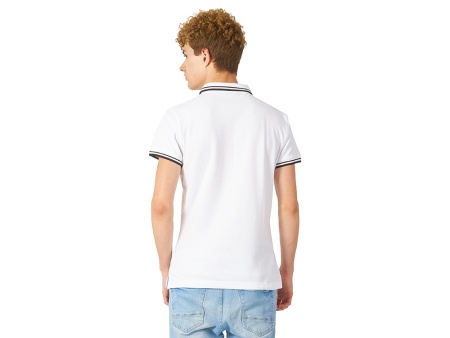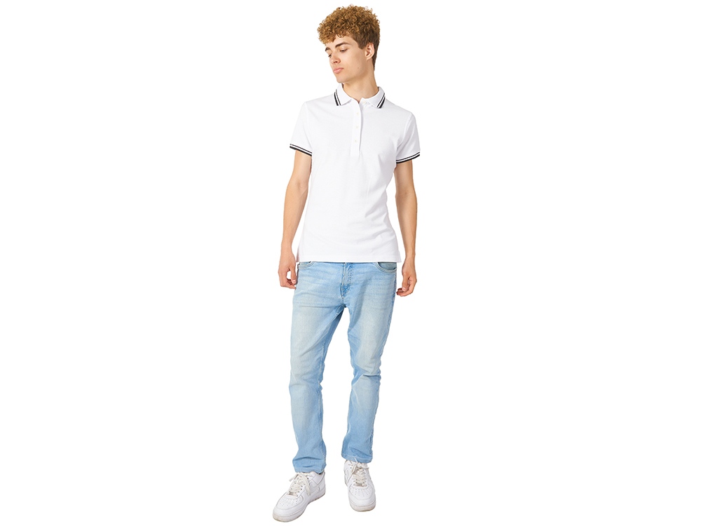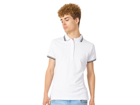 Рубашка-поло Erie с окантовкой. Воротник и манжеты резинка 1х1. Мужская модель с двумя пуговицами, женская - 4 пуговицы в тон изделия. Обшивка внутри воротника. Женская модель с разрезами по бокам. Женская модель приталена. Пике, 100% чесаный хлопок. Плотность 180 г/м2.