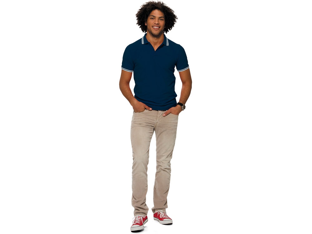 Рубашка-поло Erie с окантовкой. Воротник и манжеты резинка 1х1. Мужская модель с двумя пуговицами, женская - 4 пуговицы в тон изделия. Обшивка внутри воротника. Женская модель с разрезами по бокам. Женская модель приталена. Пике, 100% чесаный хлопок. Плотность 180 г/м2.