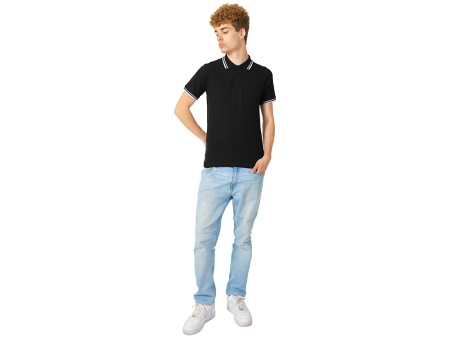 Рубашка-поло Erie с окантовкой. Воротник и манжеты резинка 1х1. Мужская модель с двумя пуговицами, женская - 4 пуговицы в тон изделия. Обшивка внутри воротника. Женская модель с разрезами по бокам. Женская модель приталена. Пике, 100% чесаный хлопок. Плотность 180 г/м2.