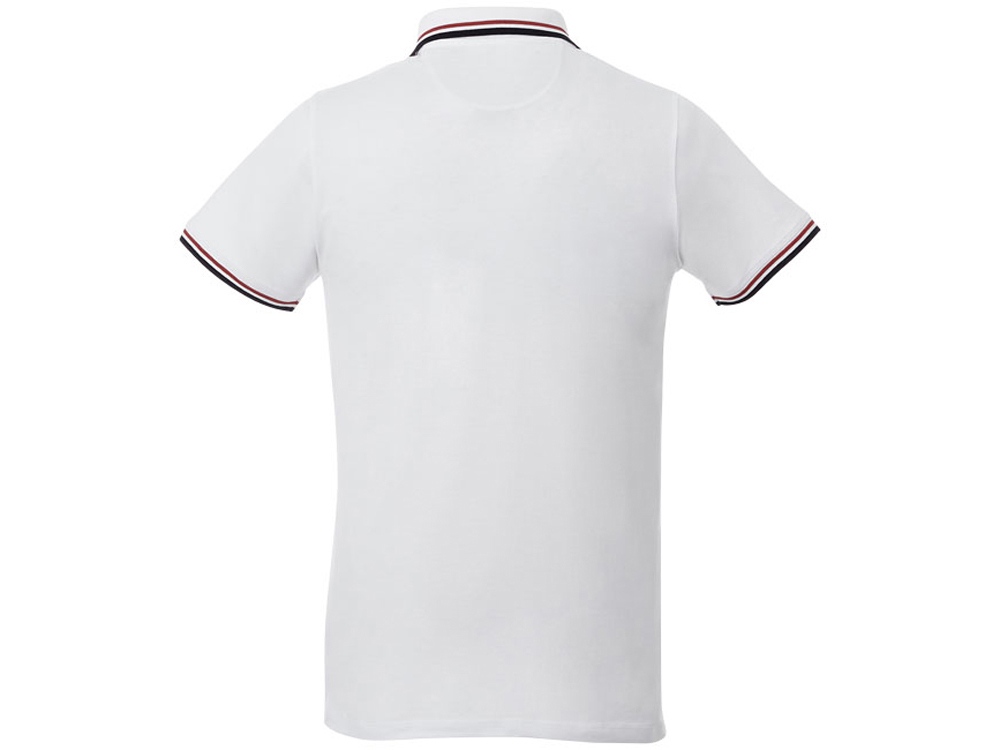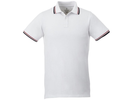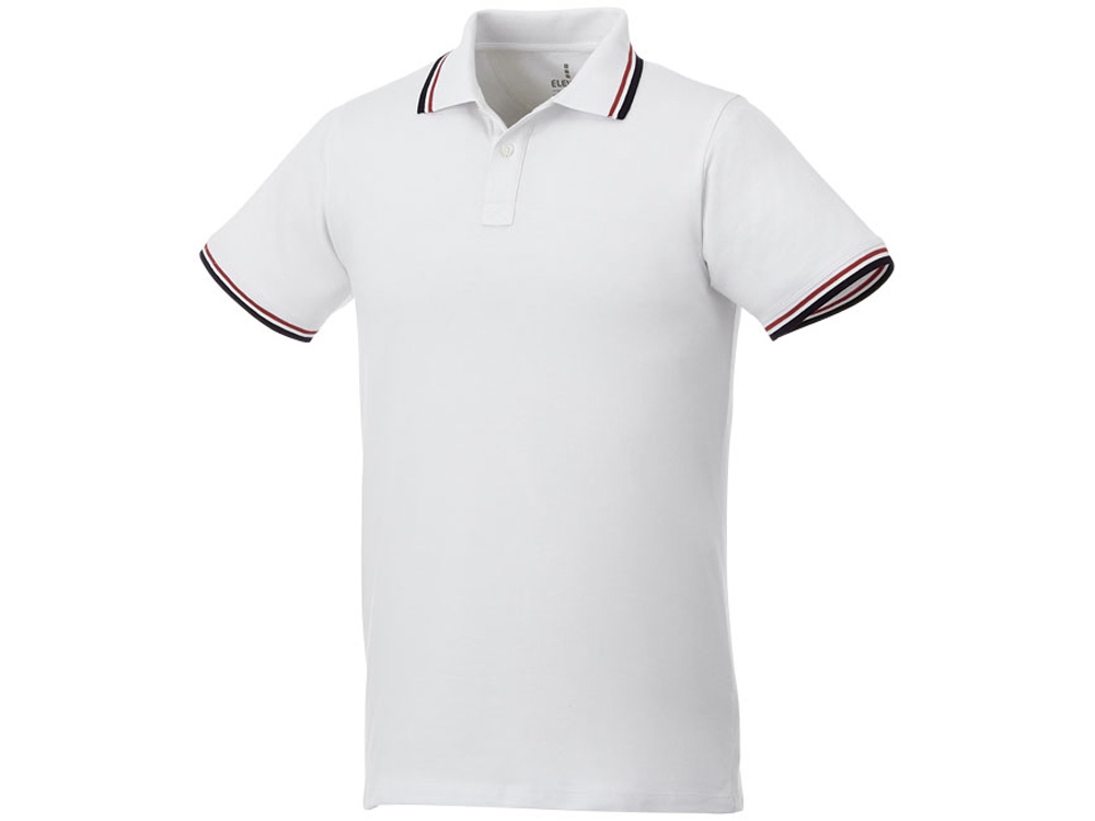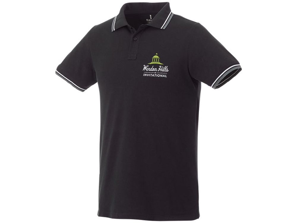 Мужская футболка поло Fairfield с коротким рукавом с проклейкой. Воротник гладкой вязкой в рубчик. Манжеты гладкой вязкой в рубчик. Контрастные окантовки. Планка с двумя пуговицами. Гравированные пуговицы в цвет изделия. Комфортный ярлык-трансфер на изделии. Трикотажное пике, 100% хлопок. 180 г/м².