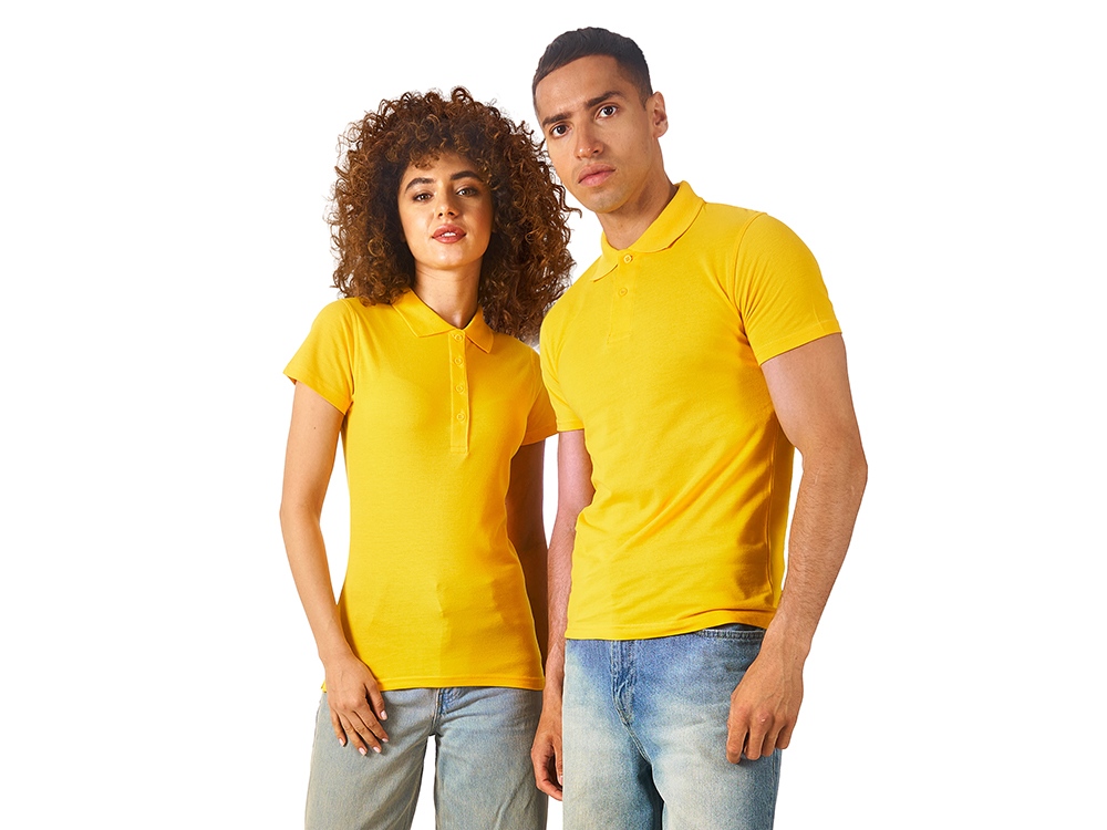 Женская рубашка-поло First. Воротник 1х1. Обшивка внутри воротника. Мужская и детская модели с 2 пуговицами, женская - с 4 пуговицами. Пуговицы с гравировкой в тон. Пике, 100% хлопок. 160 г/м2.