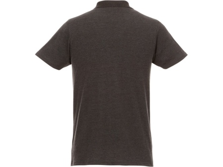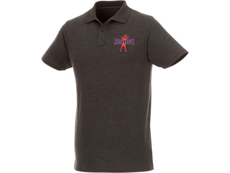 Мужское поло Helios с коротким рукавом. Отрезной-отрывной ярлык для комфорта. Воротник гладкой вязкой в рубчик. Планка с двумя пуговицами. Двойная строчка на воротнике и внизу изделия. Пуговицы в цвет изделия. Полоска на горловине в контрастном цвете. Трикотаж Piqué, 100 % хлопок. 180 г/м².