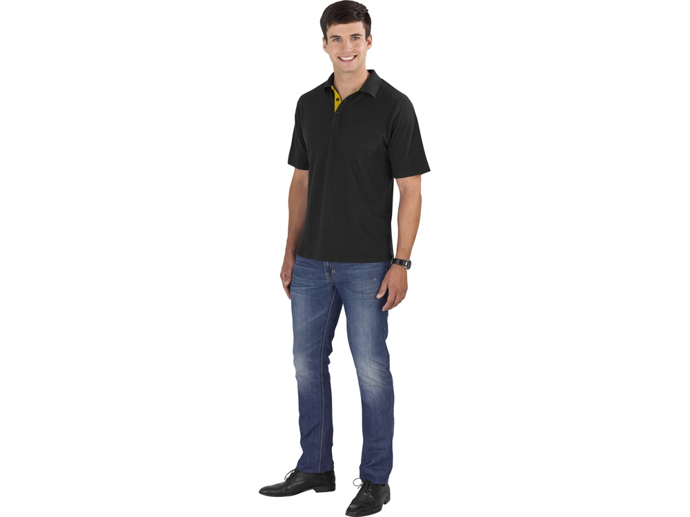 Рубашка-поло Solo изготовлена из полиэстера (65%) и хлопка (35%). Модель универсальная - в ней можно ходить в офис и заниматься спортом. Главная особенность в том, что сама рубашка черного цвета, а воротник отделан тканью разных ярких цветов. На поло можно нанести изображение по вашему эскизу. Рубашка-поло Solo прекрасно подойдет для создания униформы или в качестве промо-сувенира. Пуговицы с гравировкой в тон - мужская модель с тремя пуговицами, а женская с четырьмя. Женская модель приталенная. Плотность - 180 г/м2.
