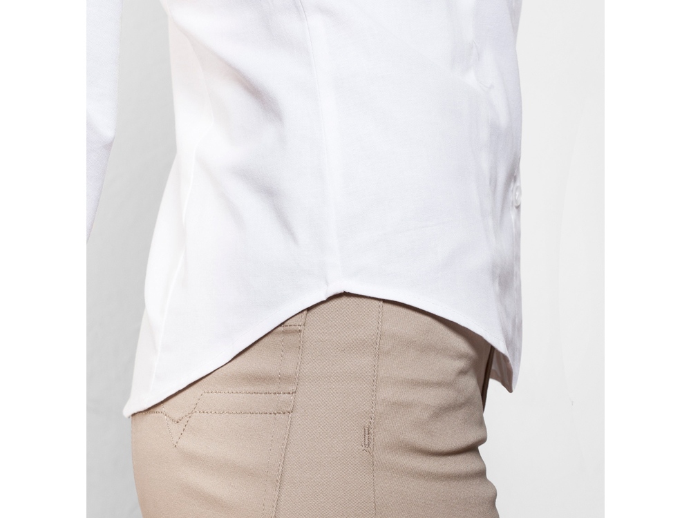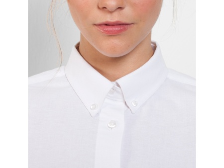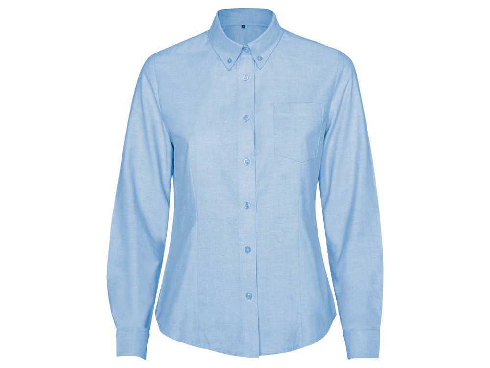 Женская рубашка с длинным рукавом, накладной карман слева. Планка на пуговицах. Отложной воротник на стойке продублирован пуговицами. Манжета регулируется по ширине с помощью 2-х пуговиц. Кокетка на спинке. Прилегающий силуэт.