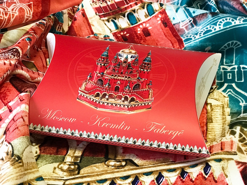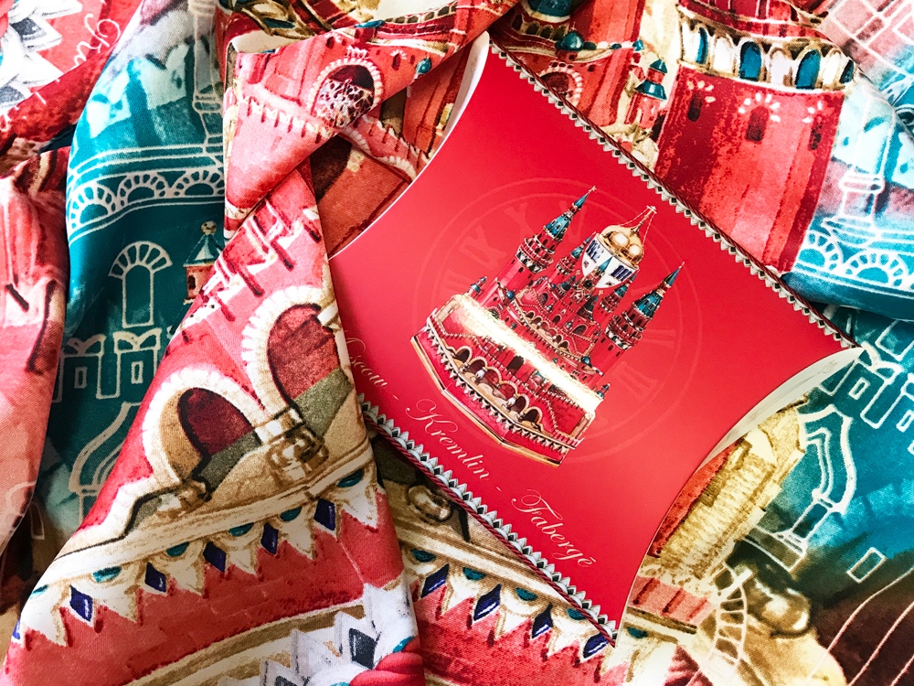 Платок Кремль - Москва - Фаберже от дизайнера Нины Ручкиной посвящён одним из самых красноречивых и ярких символов России.