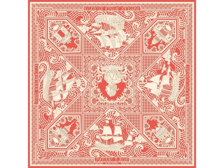Тематика платка - Петровский Флот. В центре - декоративная резная пластина в пышном обрамлении с профилем великого русского самодержца Петра I.