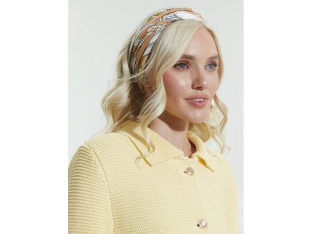 Сочетания благородного золота и слоновой кости, плавные линии и стилизованные цветы рождают необычайно элегантный дизайн авторского аксессуара. Такой платок привнесет дополнительный шик как в базовый гардероб, так и в вечерний стиль.