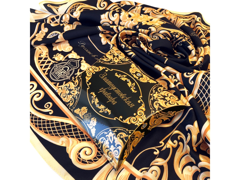 Платок Златоуствоская гравюра от бренда Русские в моде - это роскошь, изящество и характер, оригинальный аксессуар и настроение праздника, который всегда с Вами.