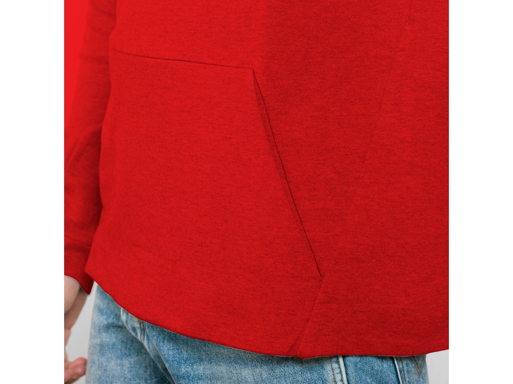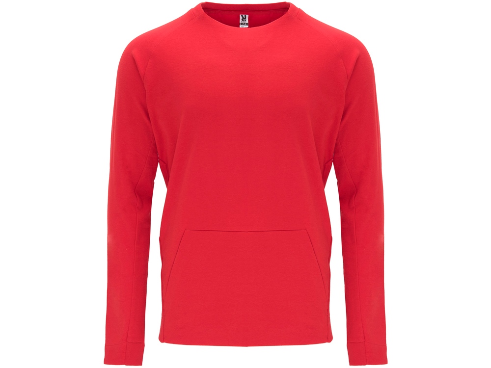 Свитшот с рукавом реглан. Горловина спинки и боковая часть манжет из риба 1х1. Карман кенгуру, диагональные боковые швы с наклонам к центру переда.