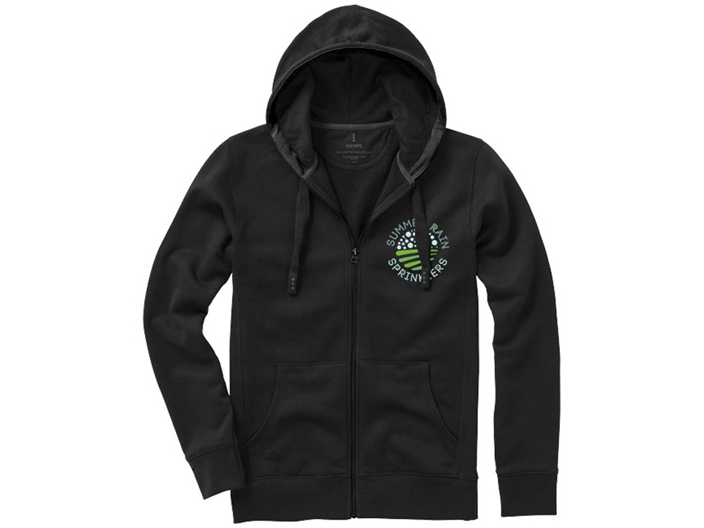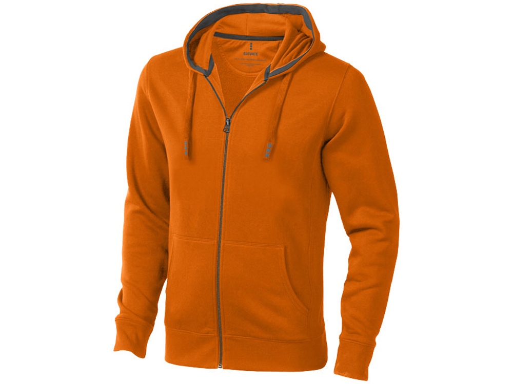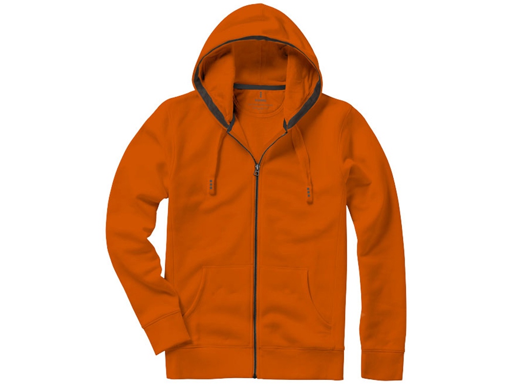Свитер Arora с капюшоном и застежкой-молнией на всю длину. резинка 2х2 на боковых вставках, поясе и манжетах. Карман кенгуру. Мужская и женская модели с завязками на капюшоне. Подкладка внутри капюшона. Подкладка на полумесяце. Атласная лента внутри горловины. Принт лого сзади в тон изделия. Серебристые люверсы с лого. Трикотаж: 80% хлопок и 20% полиэстер, чесаная внутренняя сторона. 300 г/м².